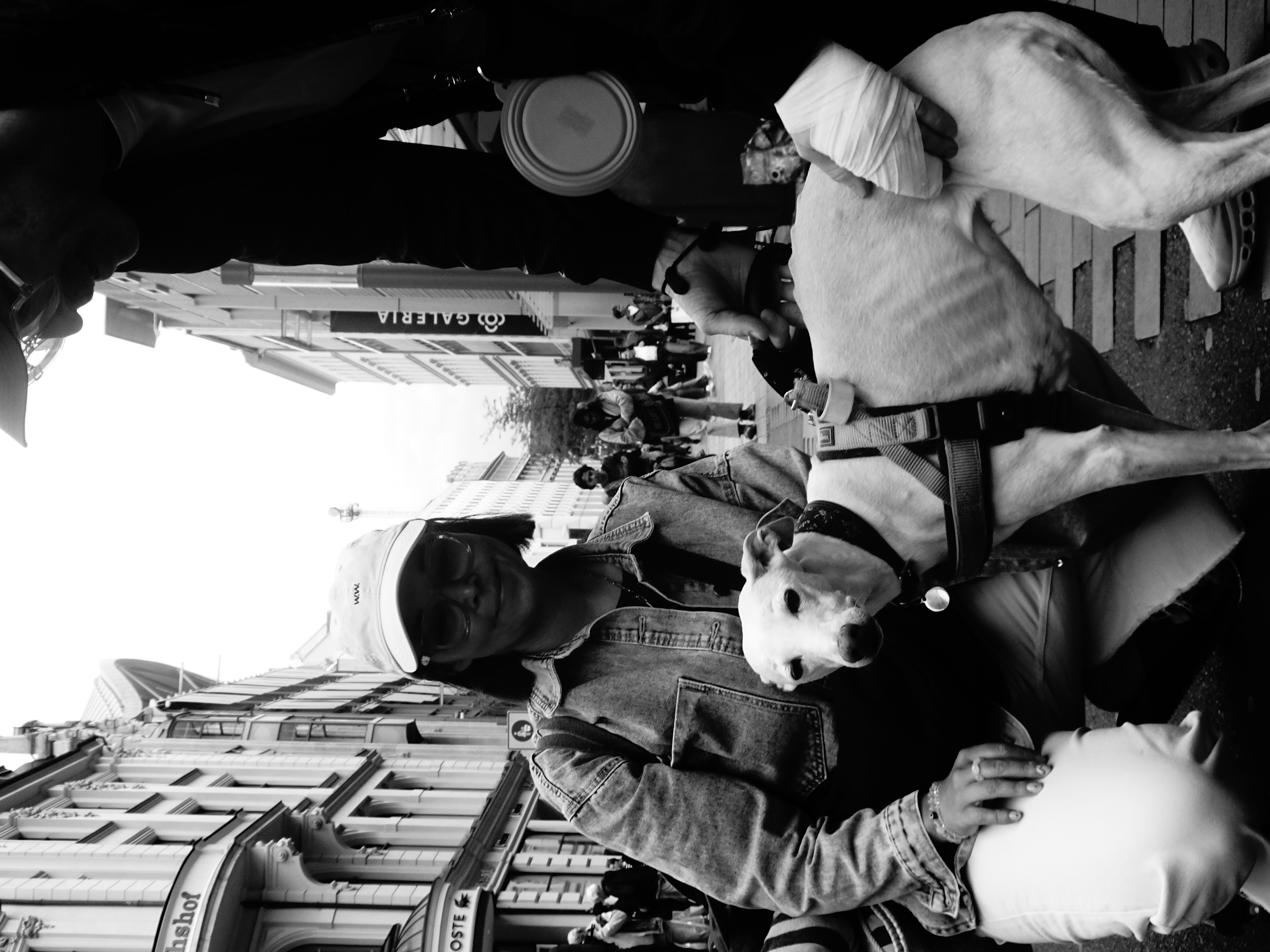 “Darf ich kurz Hallo sagen?” “Ja, natuerlich, *** Sitz! Er/Sie ist sehr freundlich”